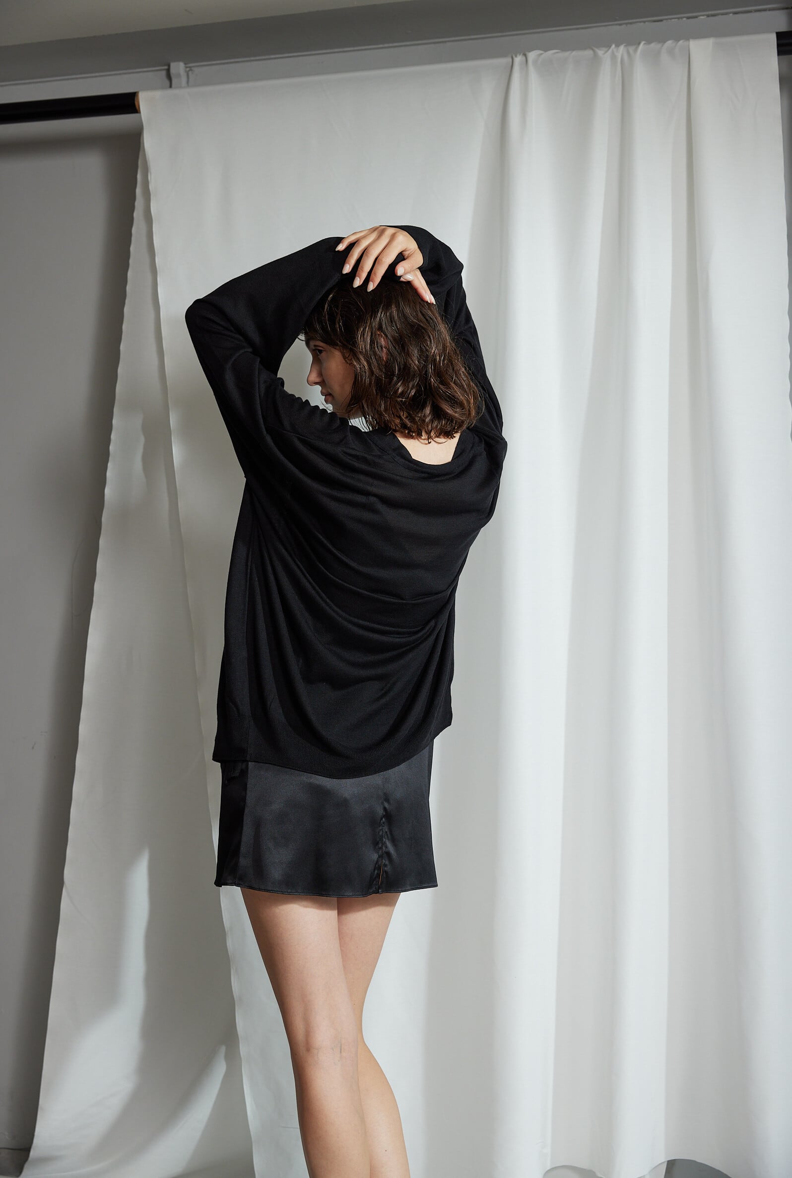 フランスPERRIN社製の厚地シルクサテンの生地を使用した、ラグジュアリーな印象のスリップドレス。着丈は約72センチ。お尻を覆う丈なので、これからの季節も暖かくカラダをお守りします。ワンピースや長めのニットの下などにレイヤーするスタイルがオススメです。