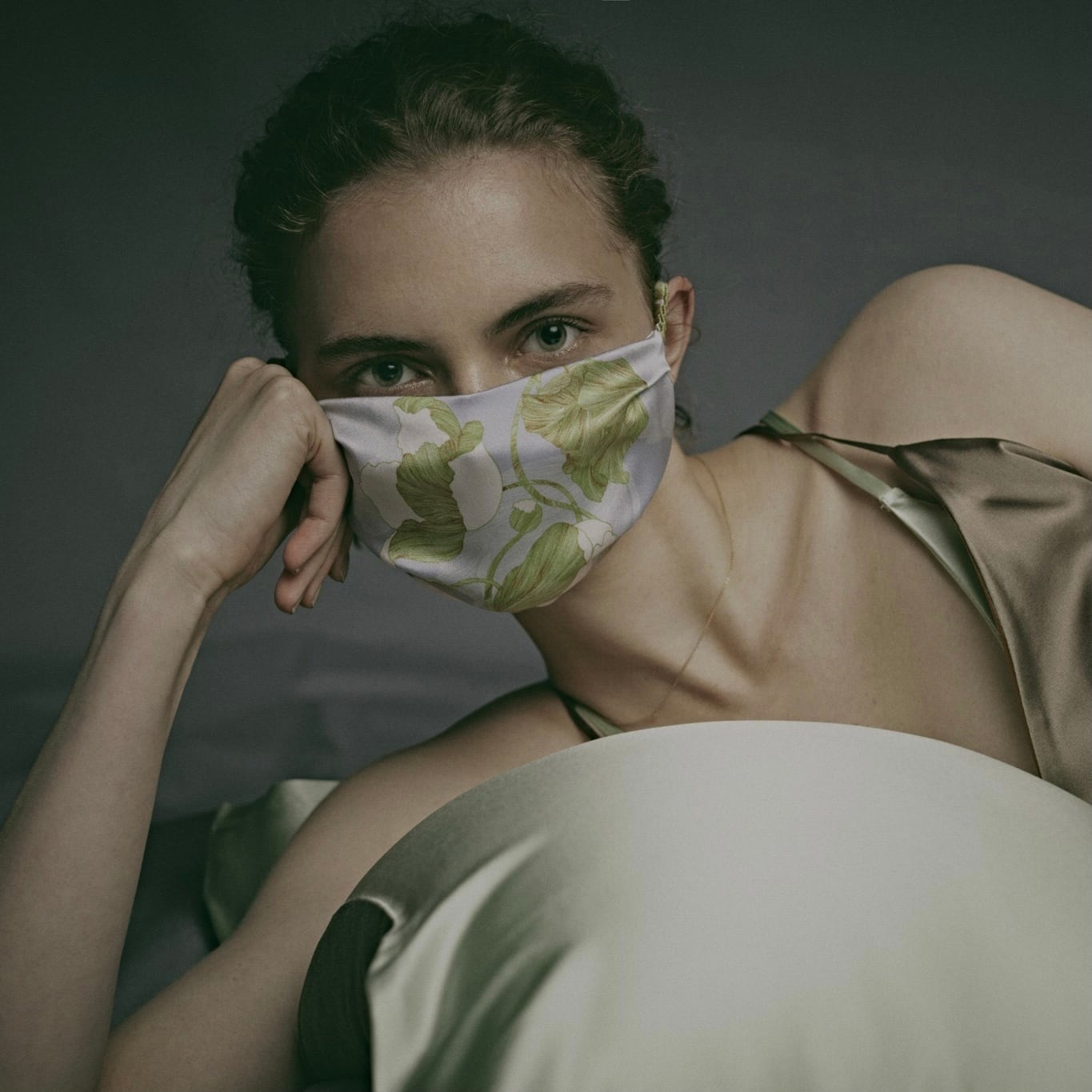 美しい光沢は、見た目にも美しくフェイス周りを明るく綺麗に見せてくれるシルクマスクです。