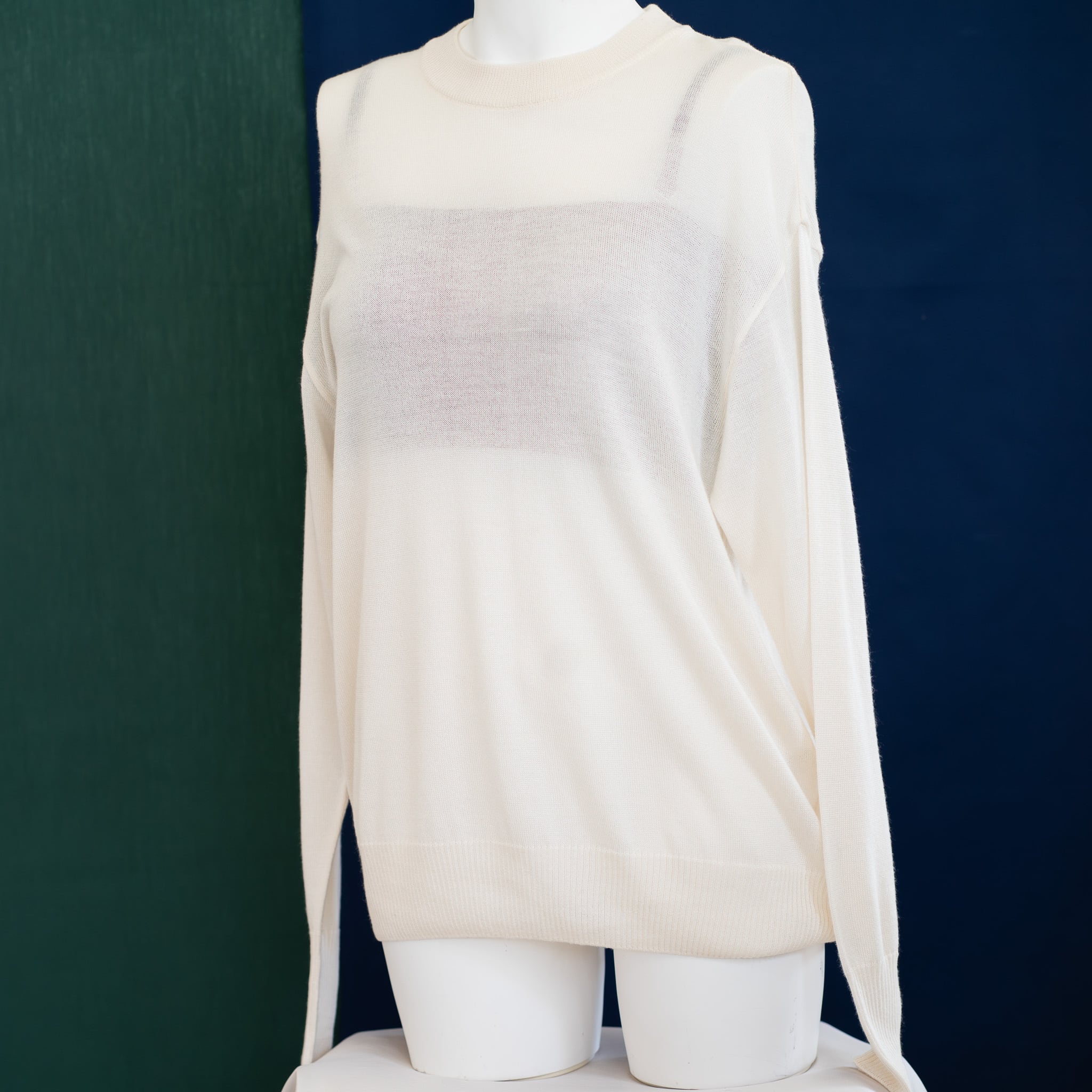 その重さ、約100グラムの薄く軽く温かいシルク100%の糸で編み上げたシルクセーターは3色ございます。『Black』『White』『Lemon yellow』この3色とおサイズも3つからお選びください。※Whiteのサイズ2は品切れとなっております。ご注意くださいませ。