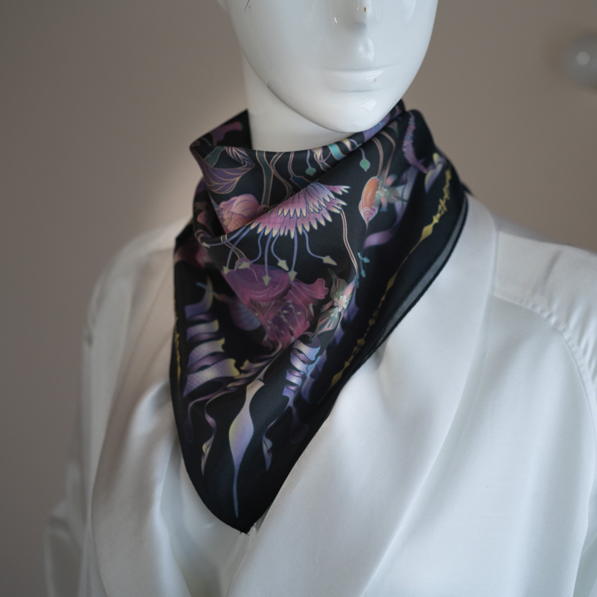 シルクスカーフ 48cm x 48cm Space Flower & Satimo