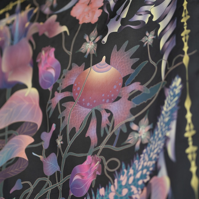 プリントは最新の大型インクジェット。これを使うことにより、繊細な色のグラデーションの奥深さがまるで生き物のように表現が可能になりました。