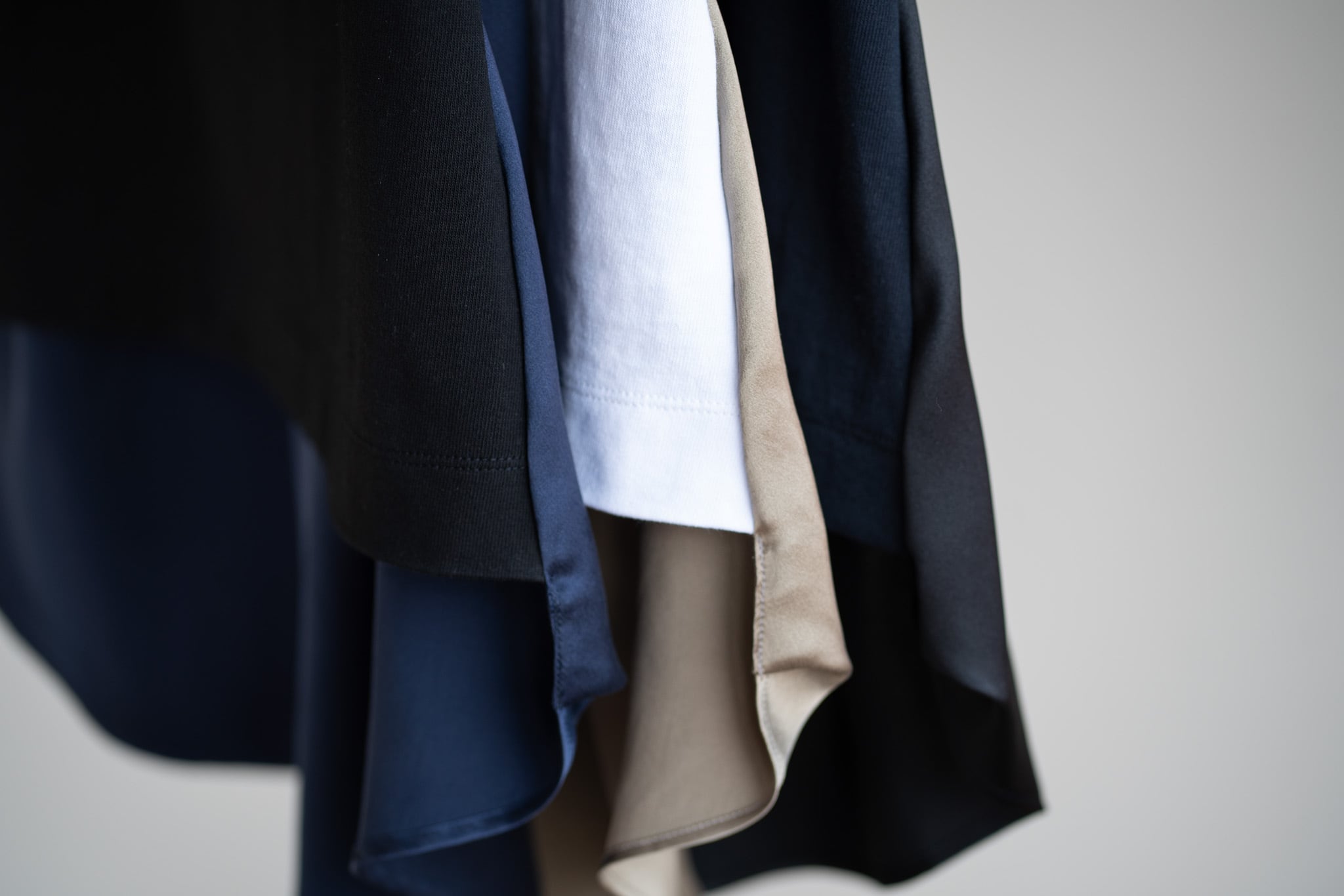 Cotton生地を定番Black、Silk生地をNavyの組み合わせです。スッキリ、シュッとした印象を作りやすい色味ですので、スタイルを綺麗に見せたい方はオススメです。