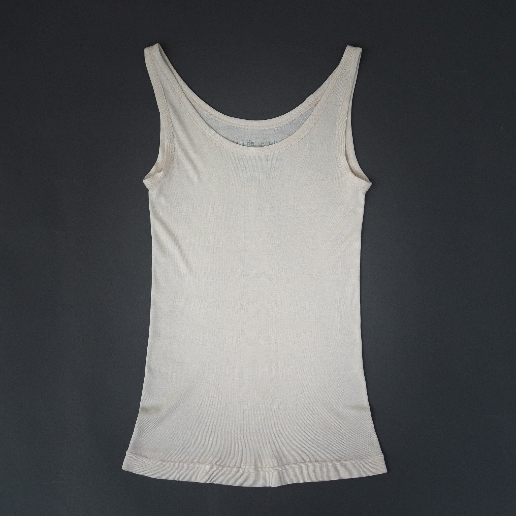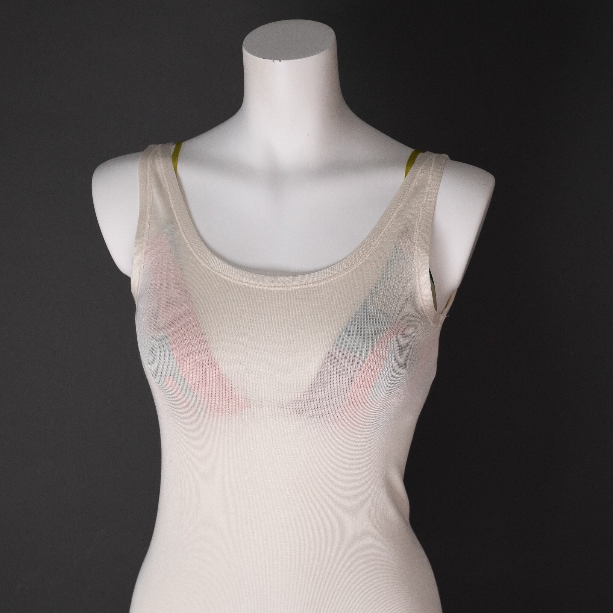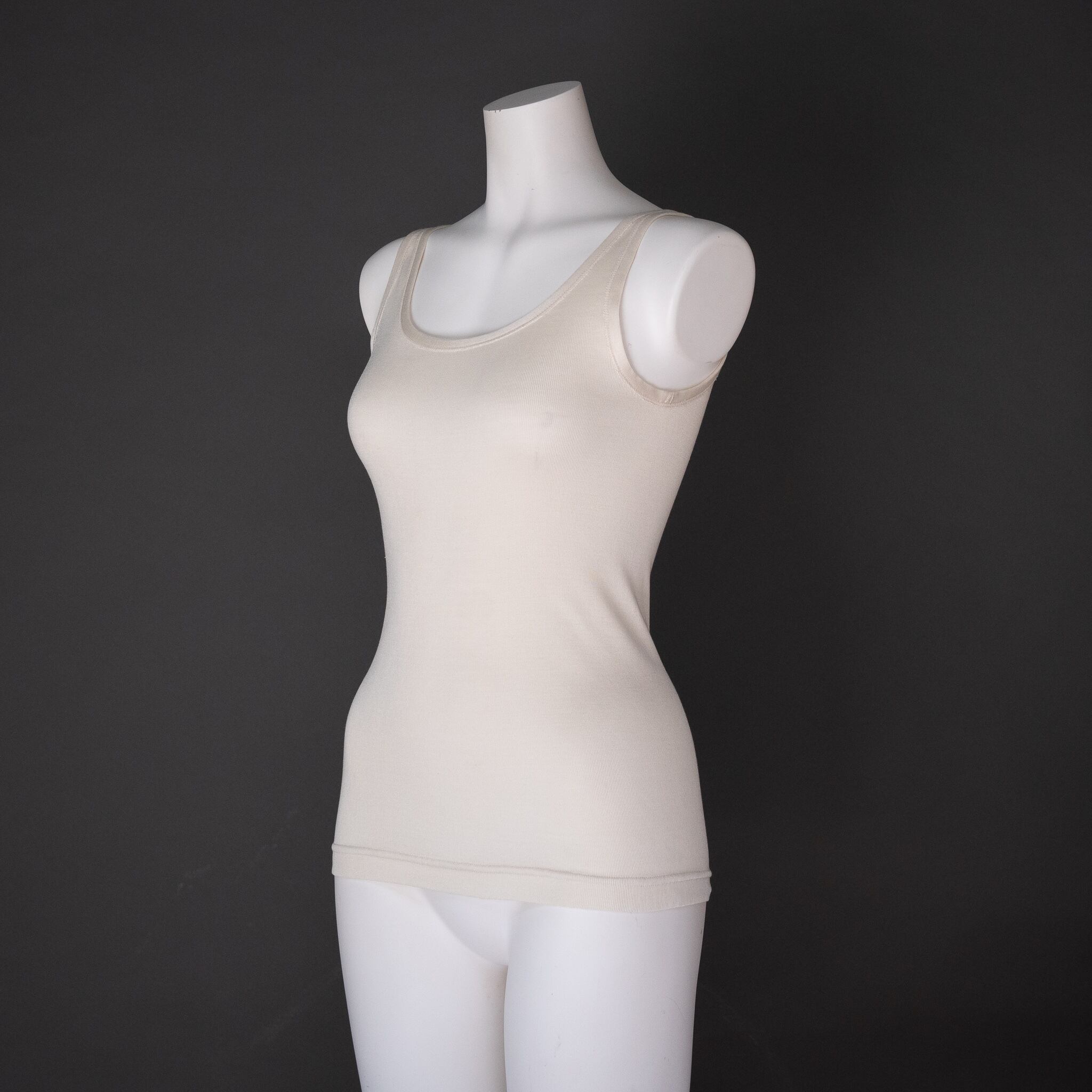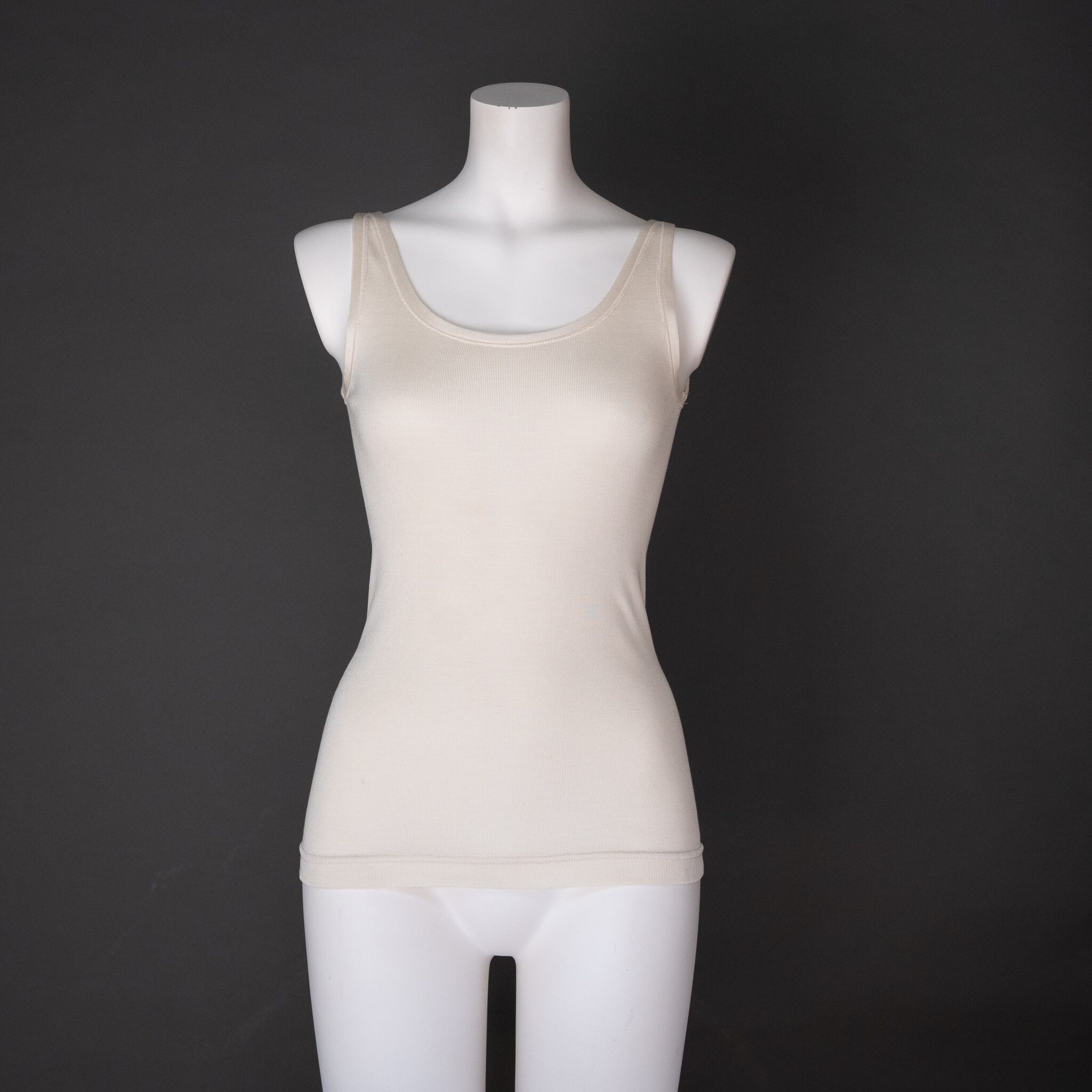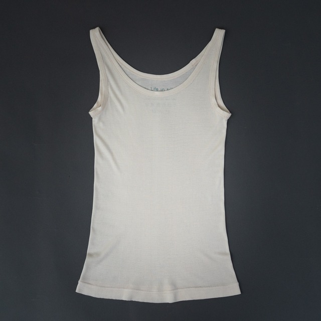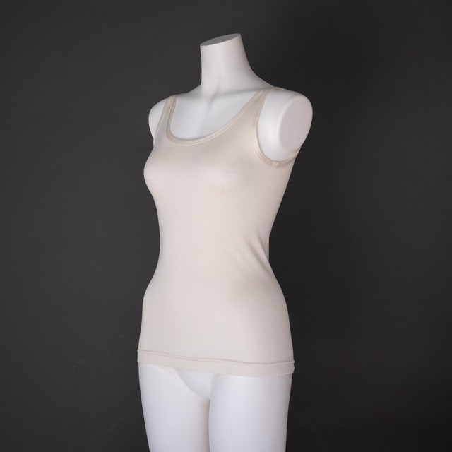 シルクのリブニットを使ったタンクトップです。 筒状に編まれている為に、脇に接ぎがない美しいシルエットのタンクトップです。