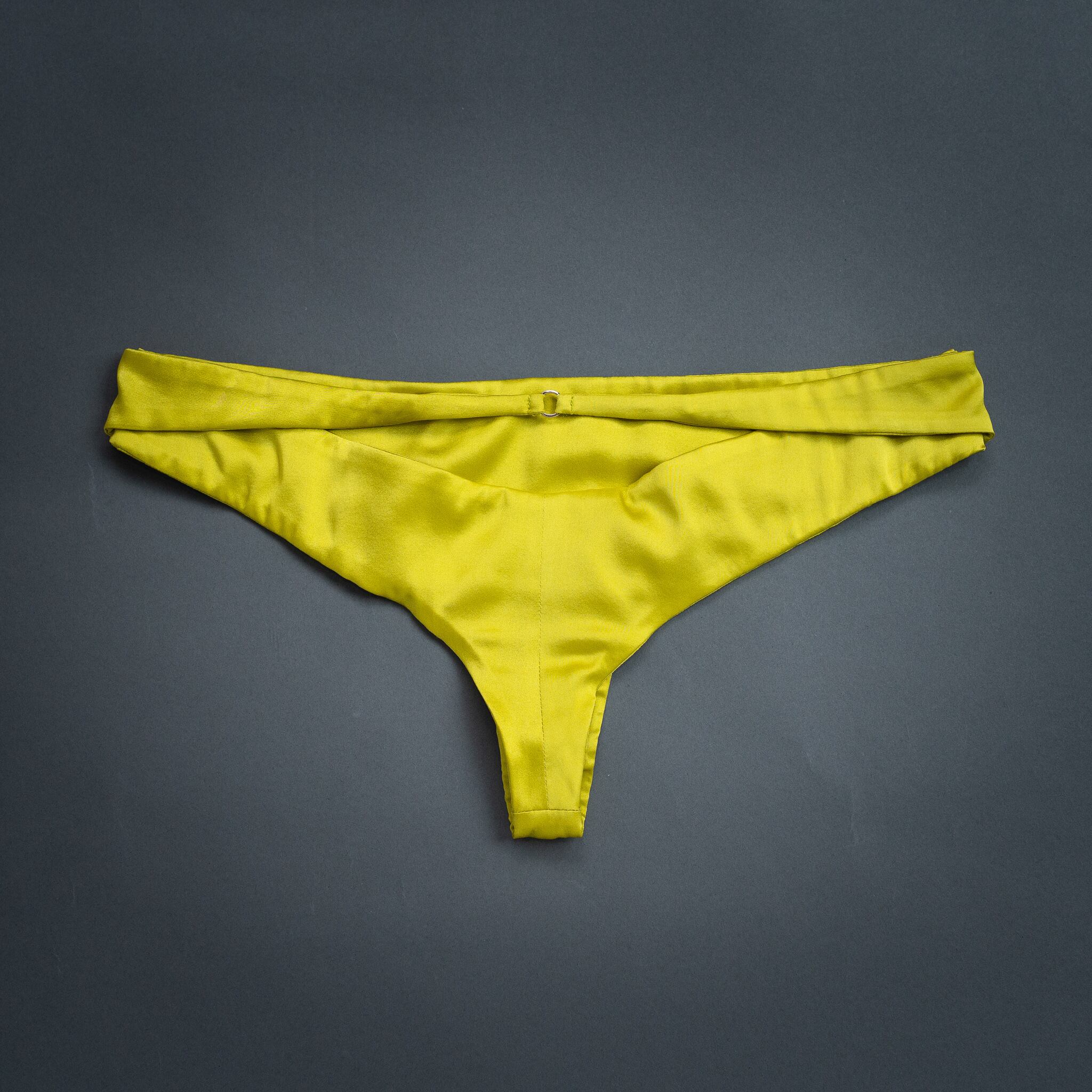 Basaraの大定番、PT001がドレッシーなデザインになりました。面で捉え、まるで着けていないかのような着用感を求めて作ったコンセプチャルなショーツのPT001。そこにスタイリッシュなバックデザインが加わりました。真ん中にゴールドのリングがあしらわれており、ローライズのパンツなどと合わせてみたいですね。