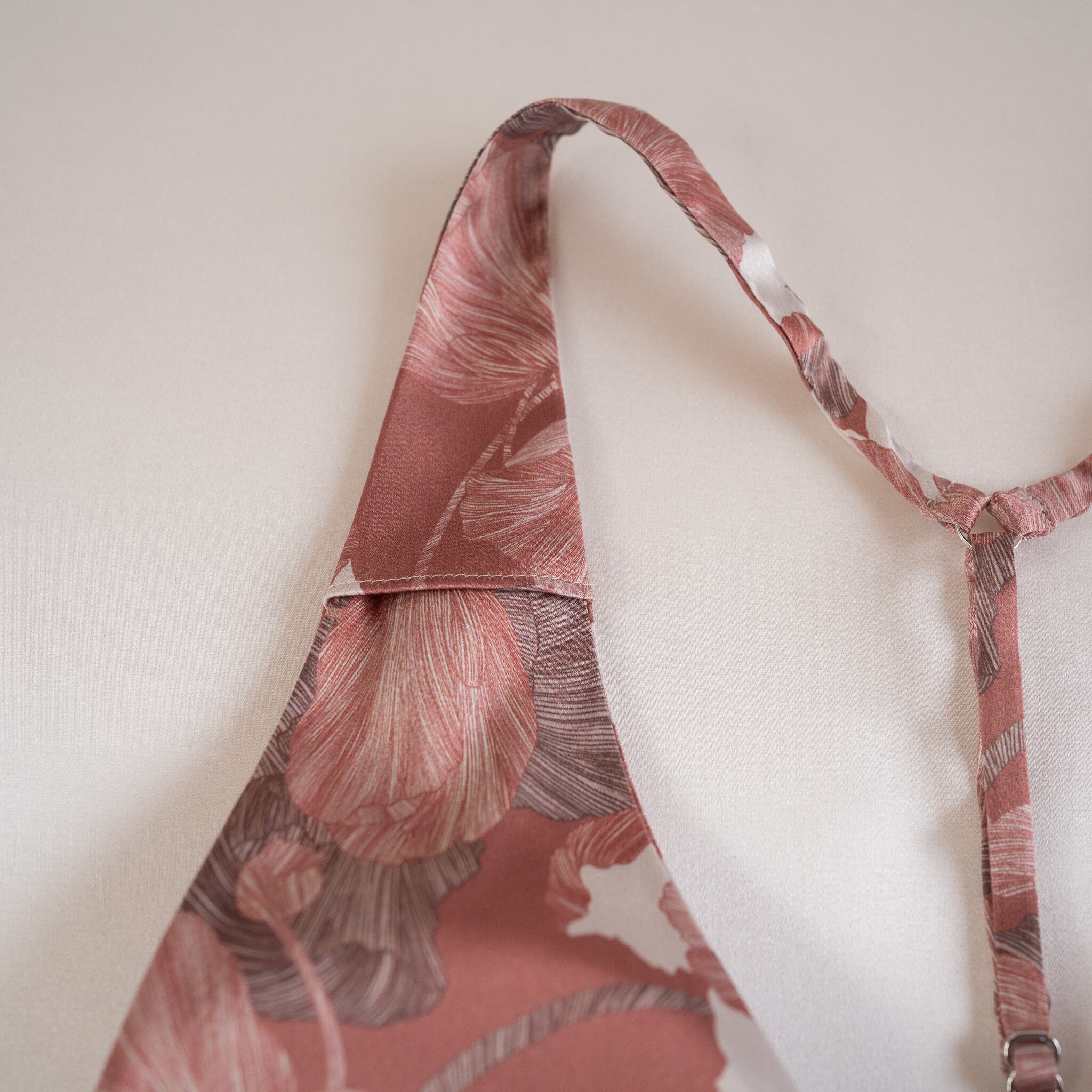 生地はフランスの文化とも言える、PERRIN社製の美しい厚地シルクサテン生地を使用。ヨーロッパの名だたるメゾンを支えるPERRIN社のシルクサテンを使った世界でも数少ないブランドの一つです。縫製は自社工場Magic Hour Sewingのお姉様たちの手による丁寧な縫製技術を駆使した、裏にも縫い目が出ないこだわりの縫製です。着けていることを忘れてしまうほどの着け心地を改めてご自身の肌でご体感くださいませ。