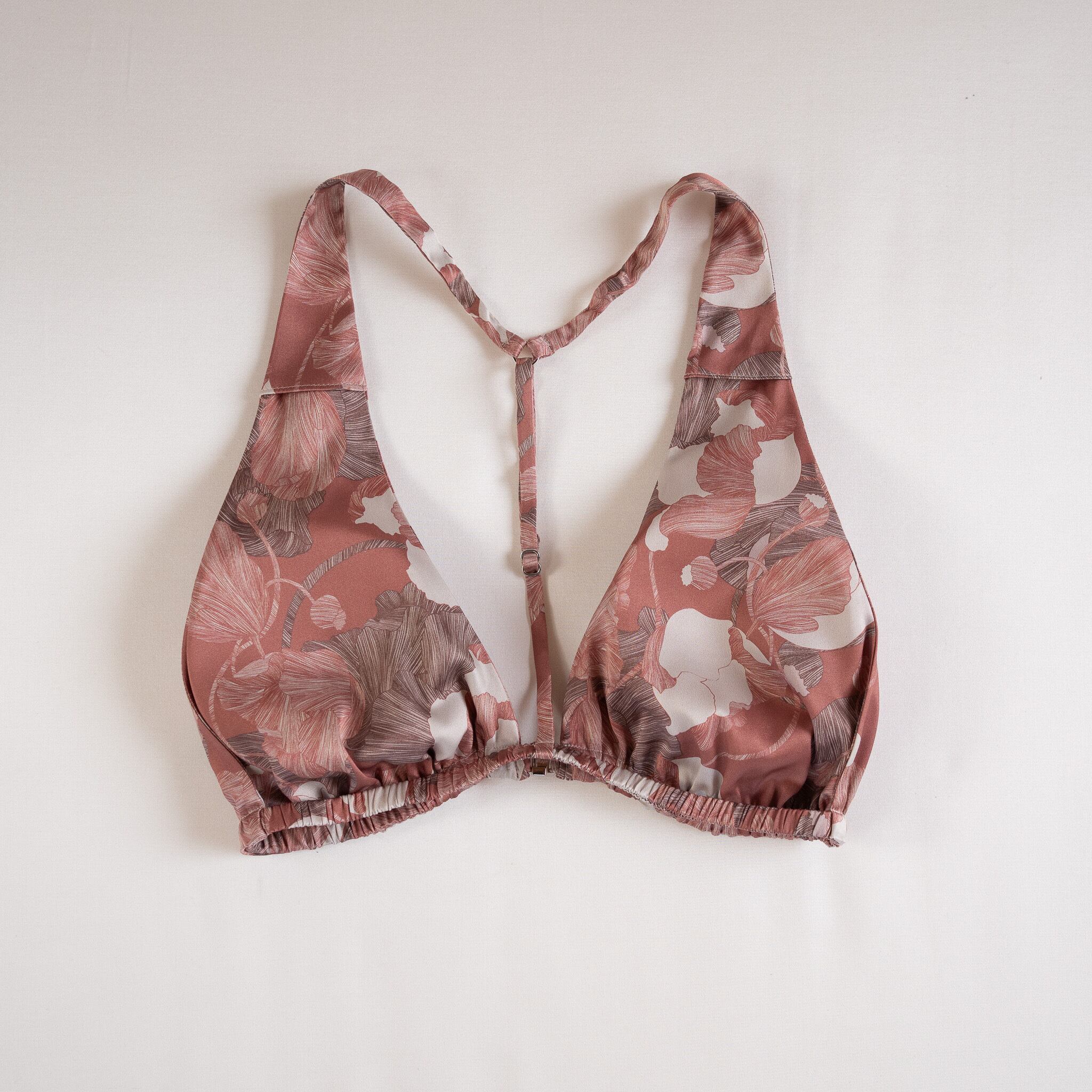 インナーパッドの取り外しが可能なノンワイヤーブラです。パットをお付けしてお届け致します。素肌に溶け込む柔らかい着用感でお胸に沿って美しいアーチを描いてくれます。特徴的なストラップ構造でYを描くバックスタイルは、背中の開いたお洋服で存在感を放ってくれるはず。アクセサリーの様なゴールドの前金具とクシュクシュとギャザーの入った下辺デザインはゴージャスな装いにも相性抜群です。ギャザーの入った背中部分にゴムを内蔵し、とても伸びの良いアンダーベルトで軽い着用感。裏にも縫い端を出さないこだわりで美しいデコルテから肩、背中の美しさを演出。裏にも共生地を使用してご自分の肌側にシルクの表生地が柔らかくフィットするデザインで着用中Basaraのシルクがバストを保湿し続けます。肩に幅があるので、お胸のある方でも食い込みづらく楽な着用感と評判です。